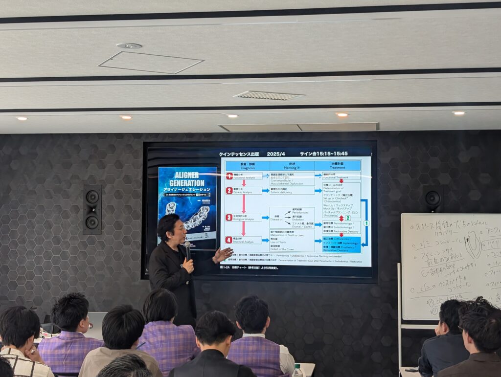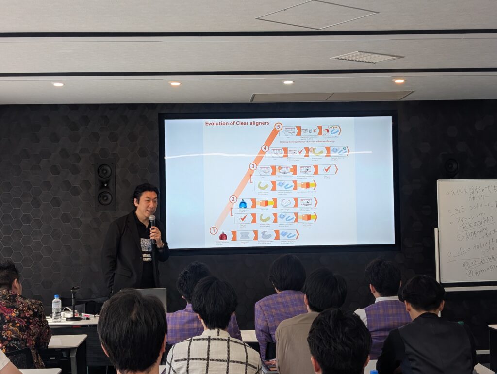 数多くのアライナー矯正治療に携わり、全国で講演活動を行う尾島賢治先生をお招きし、エス歯科グループセミナールームで院内講習を行いました。