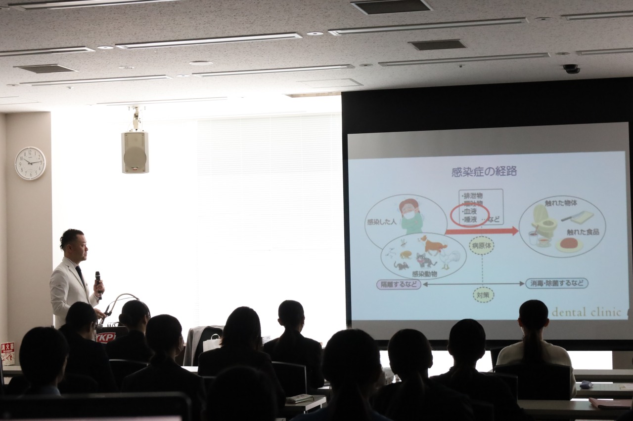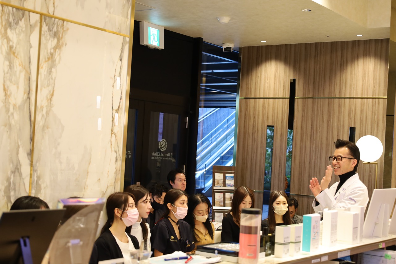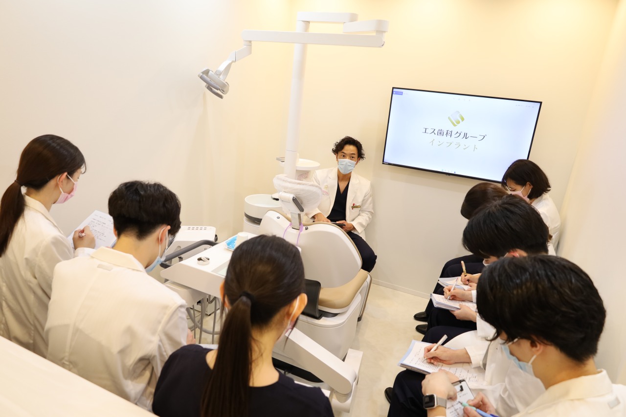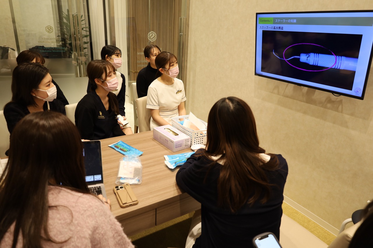 院内の教育はもちろん、接遇講習やインプラント研修など外部講師を招いて様々な研修を行っています。