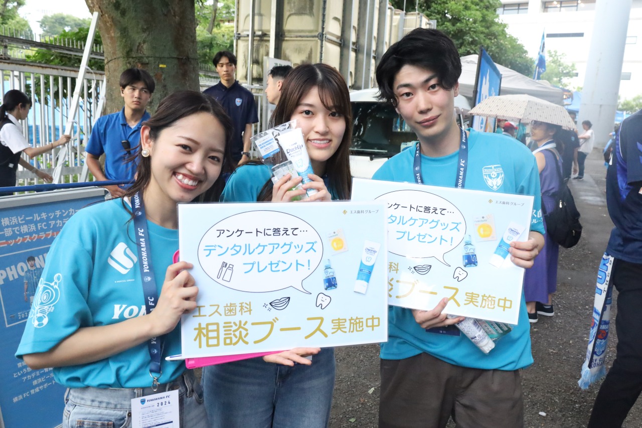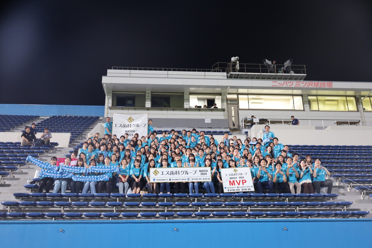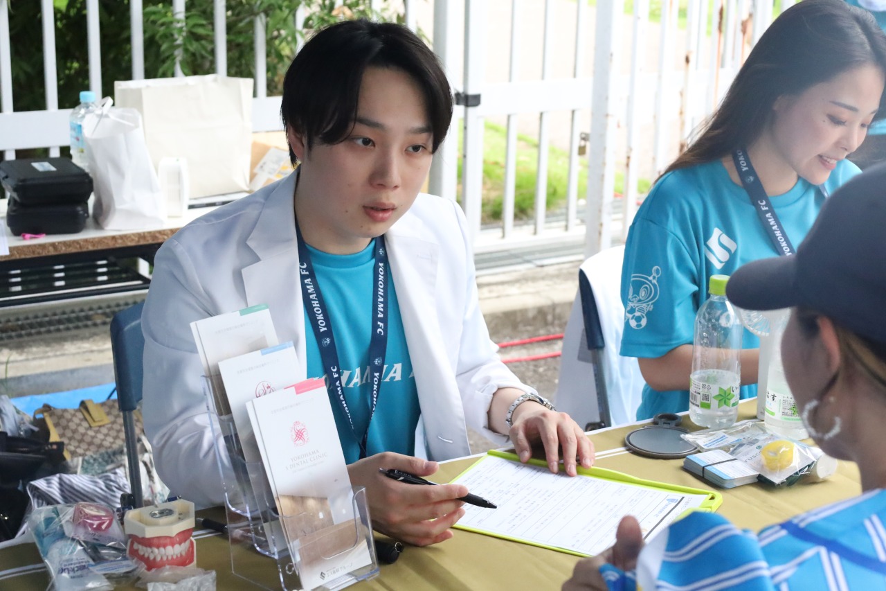 横浜FC(プロサッカーチーム)のオフィシャルクラブデンティストとして、協賛試合を開催しています。当日は試合の応援やイベントに参加しています。