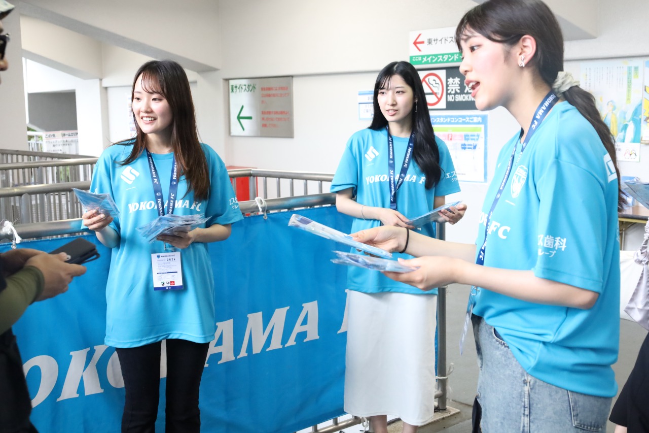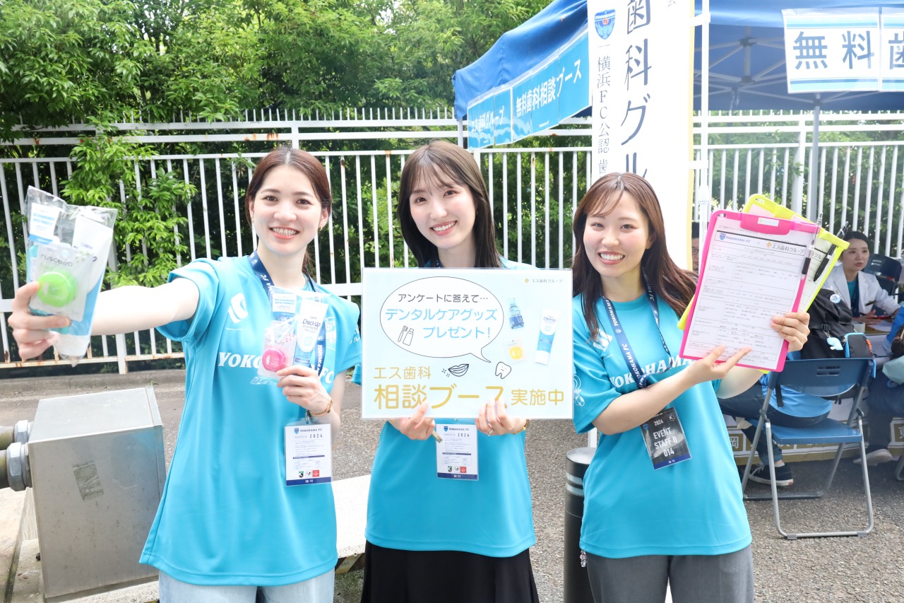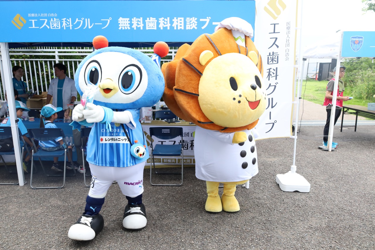 横浜FC(プロサッカーチーム)のオフィシャルクラブデンティストとして、協賛試合を開催しています。当日は試合の応援やイベントに参加しています。
